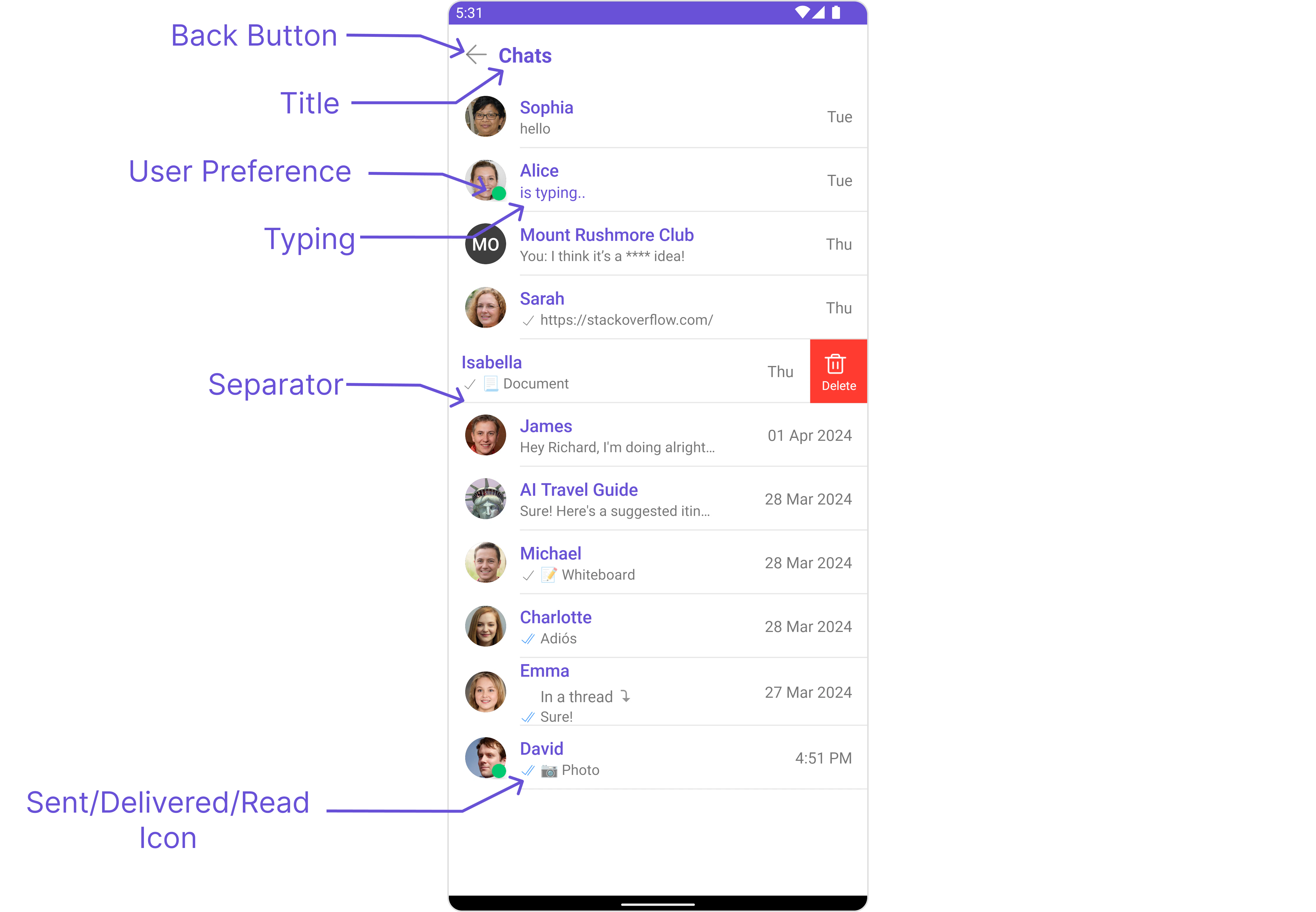 To fit your app’s design requirements, you can customize the appearance of the conversation component. We provide exposed methods that allow you to modify the experience and behavior according to your specific needs.
