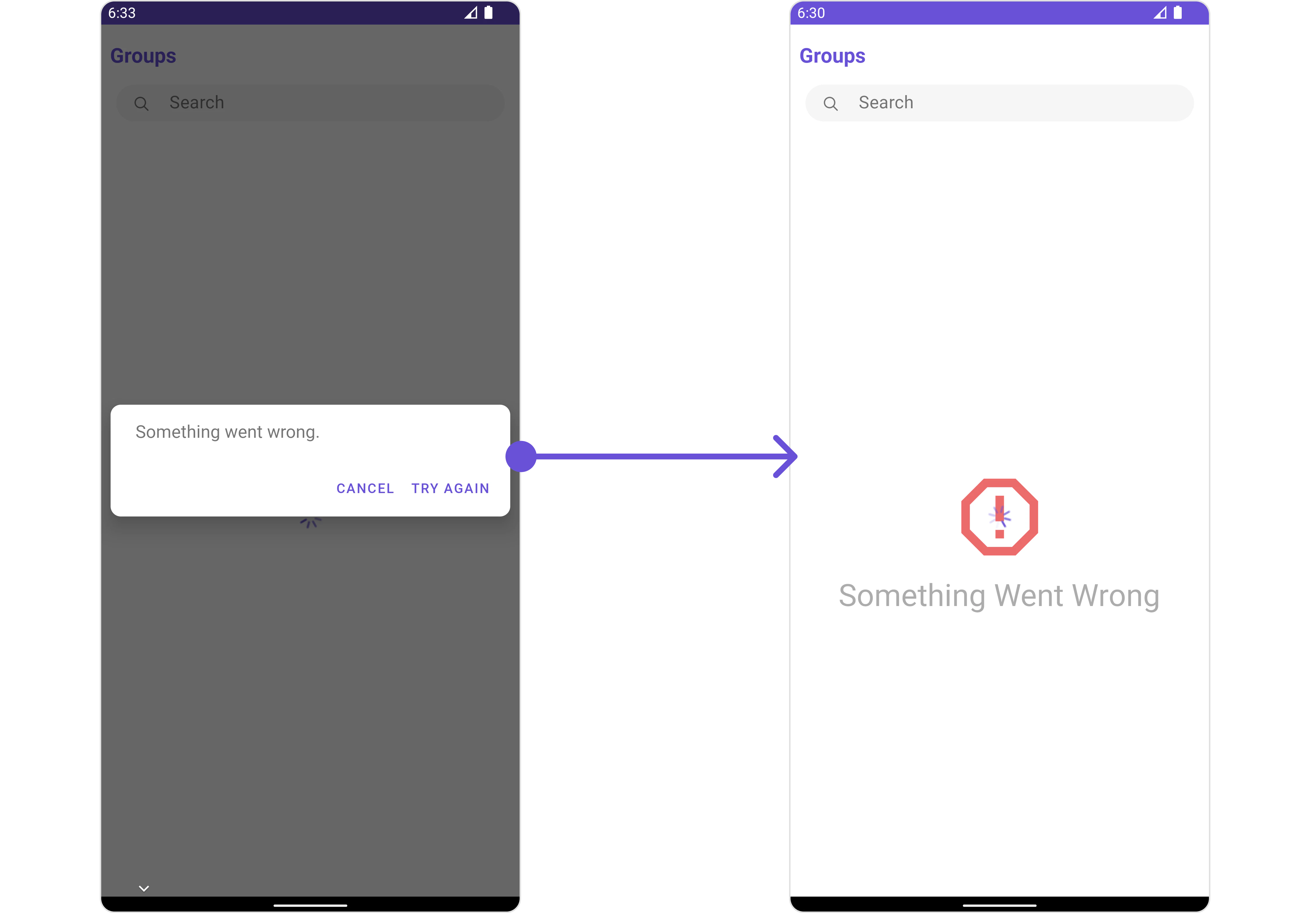 | ErrorState Text | Used to set a custom text response when some error occurs on fetching the list of groups | .errorStateText("Your Text") |