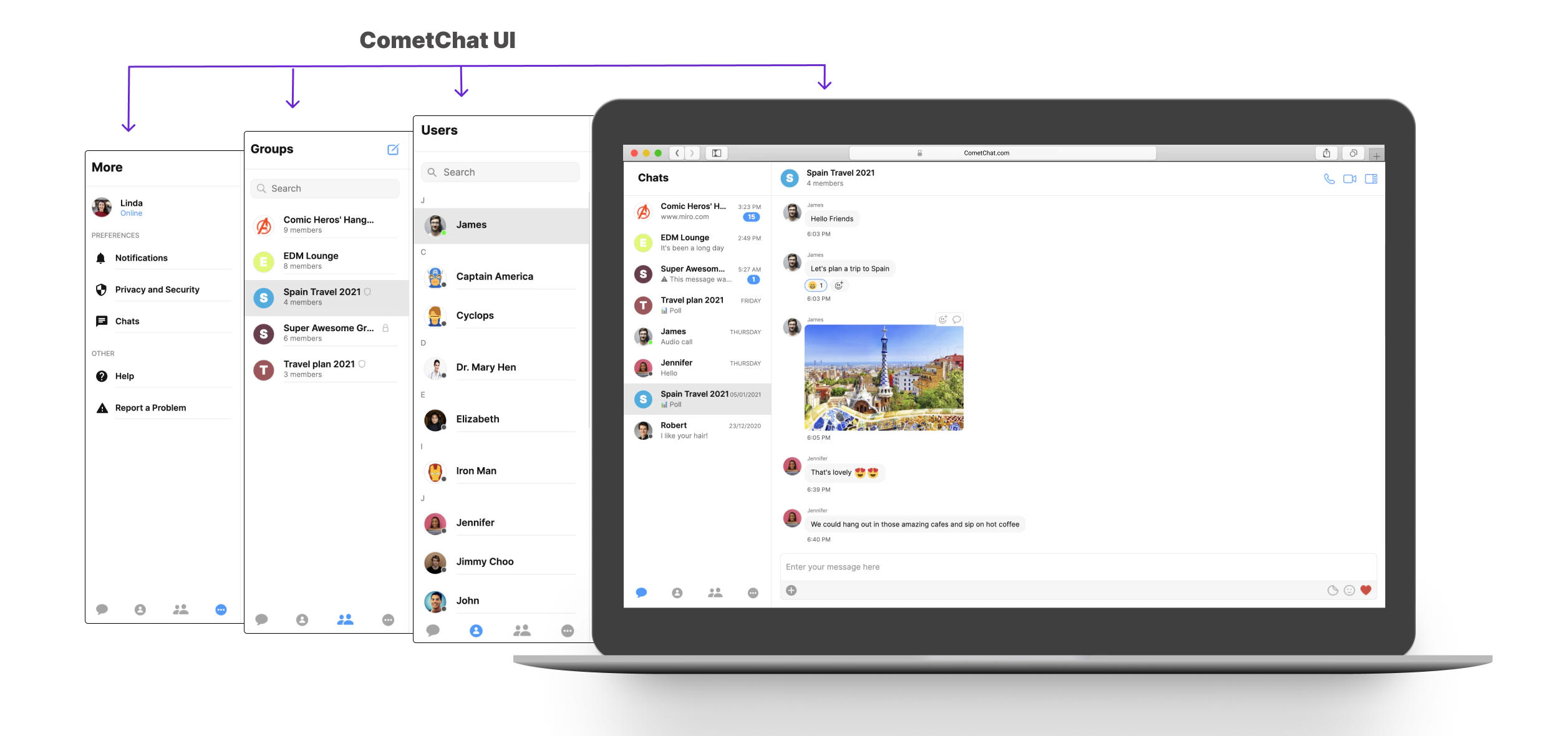 CometChatUI is an option to launch a fully functional chat application using the UI Kit. In CometChatUI all the UI Components are interlinked and work together to launch a fully functional chat on your website/application