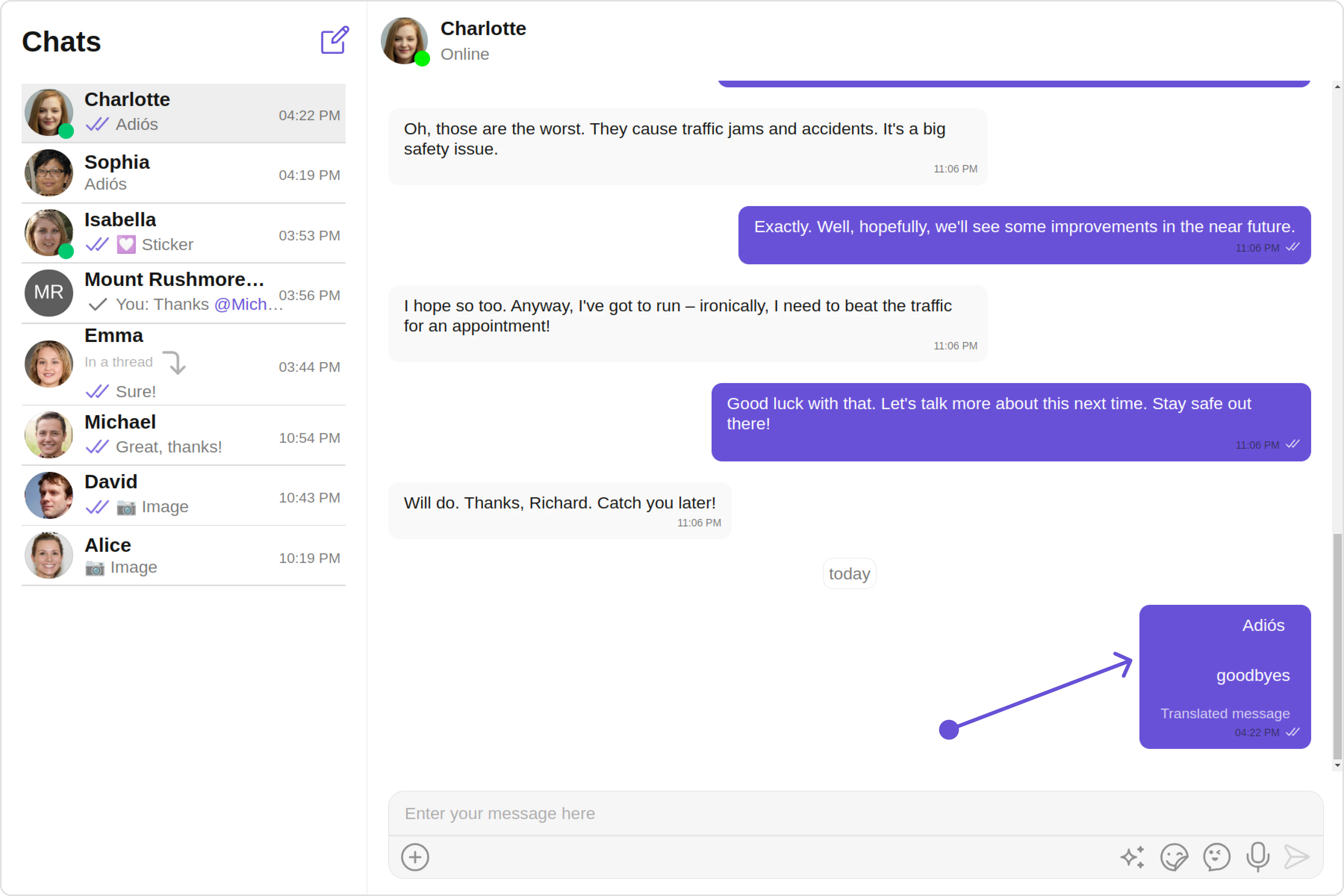 The Message Translation extension in CometChat is designed to translate any message into your local locale. It eliminates language barriers, making the chat more inclusive. For a comprehensive understanding and guide on implementing and using the Message Translation Extension, refer to our specific guide on the Message Translation Extension. Once you have successfully activated the Message Translation Extension from your CometChat Dashboard, the feature will automatically be incorporated into the Action Sheet of MessageList Component component of UI Kits.