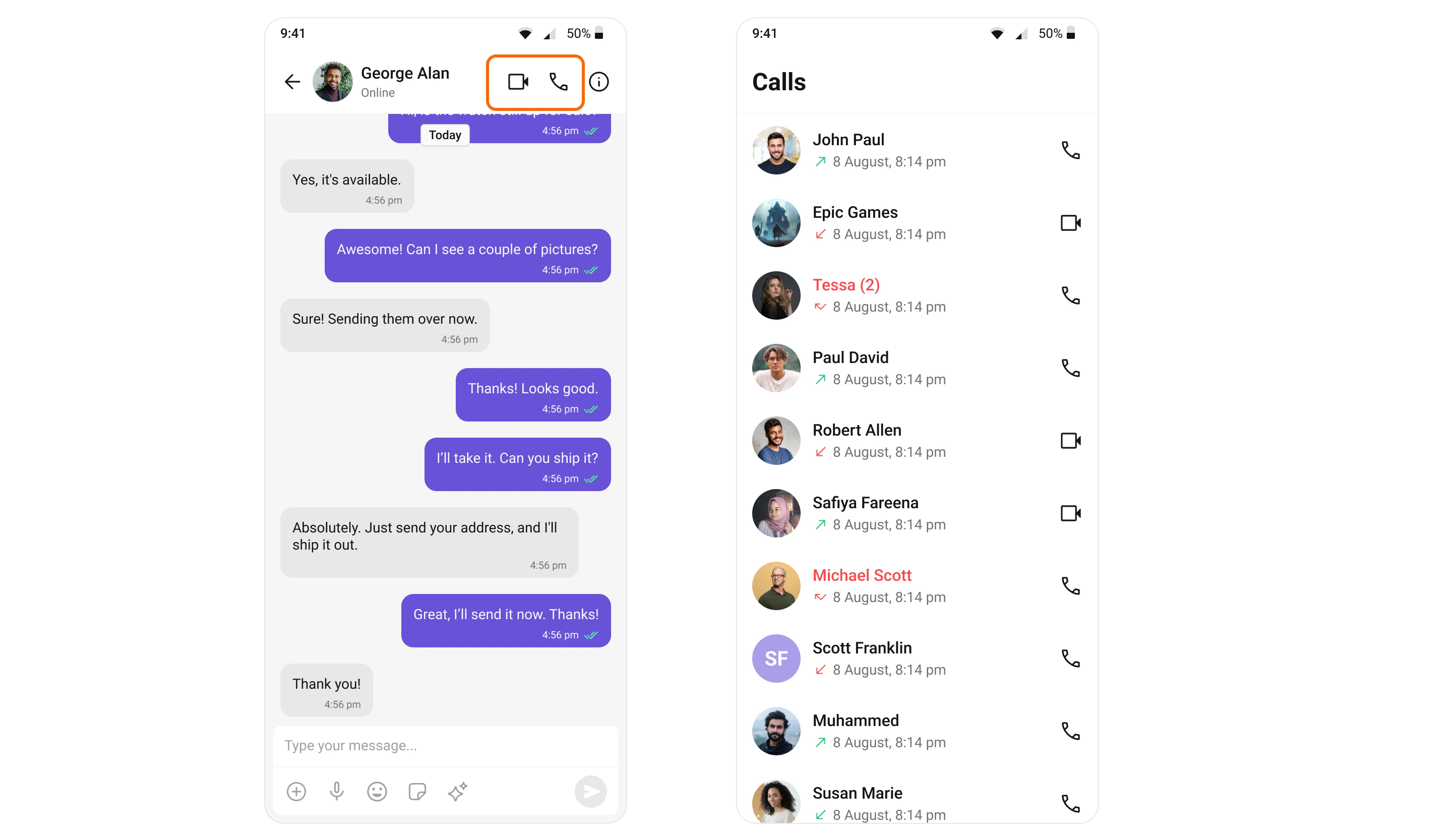After adding the dependency, the Flutter UI Kit will automatically detect it and activate calling features. You will see CallButtons rendered in the MessageHeader widget.