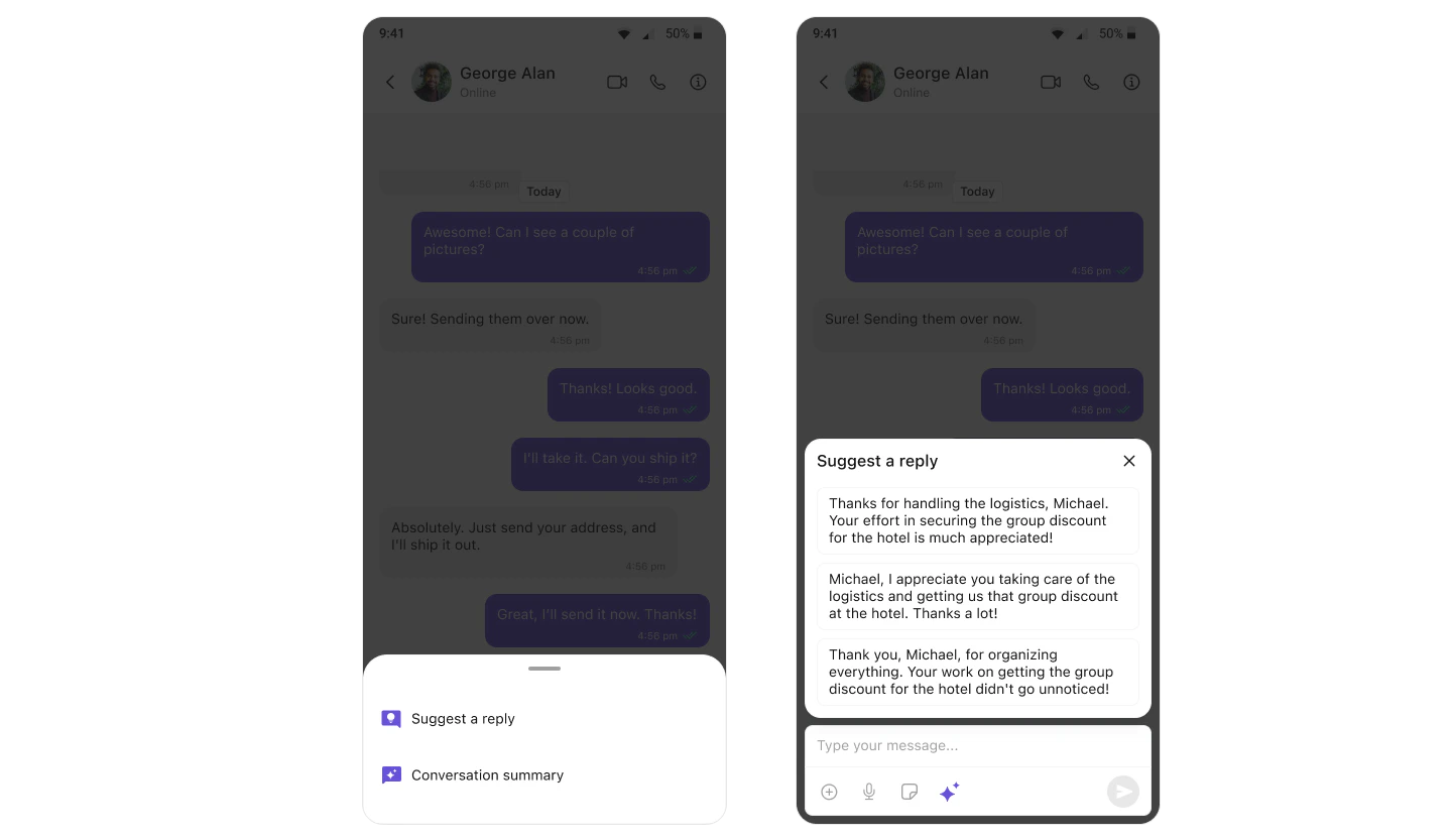 "features": ["Conversation Starter", "Smart Replies", "Conversation Summary"]