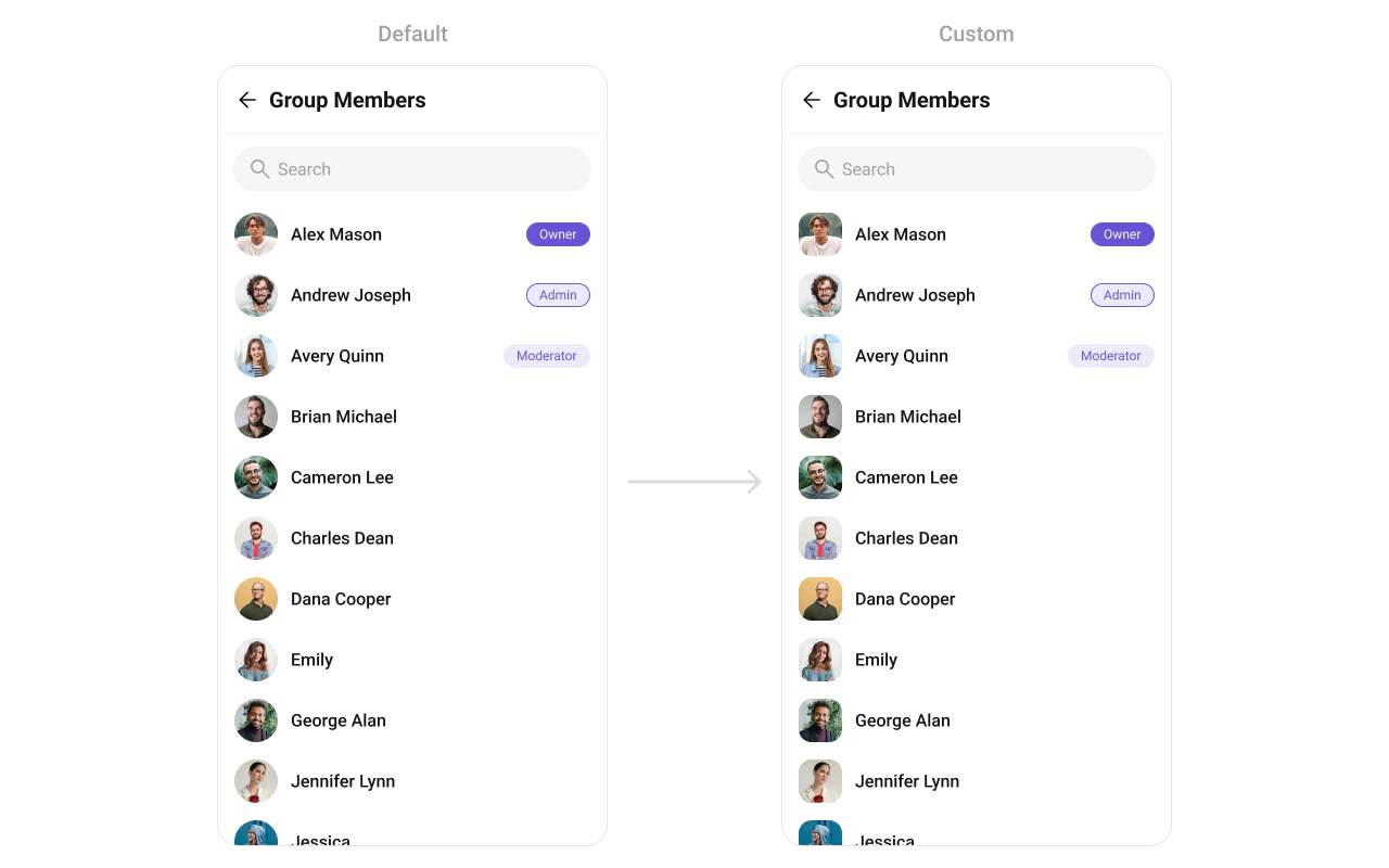 return <CometChatGroupMembers group={group} ItemView={getItemView} />;
