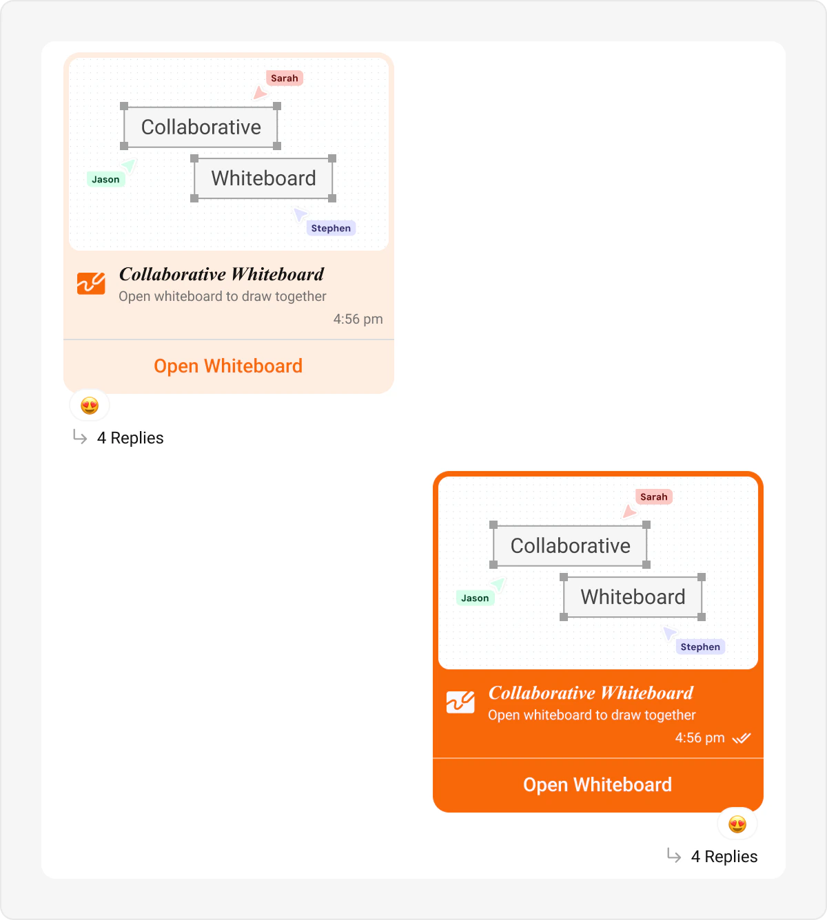 Collaborative bubbles display collaborative content, such as shared documents or tasks. Default