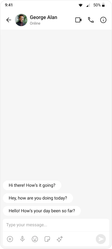 3. Message composer — text input with media, emojis, and send button
