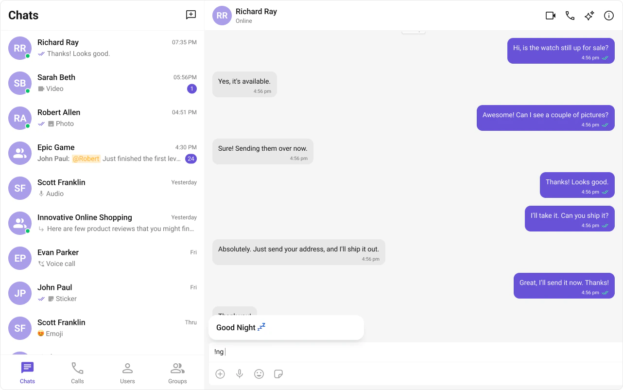 | Track character | ! — triggers shortcut expansion in the message composer |