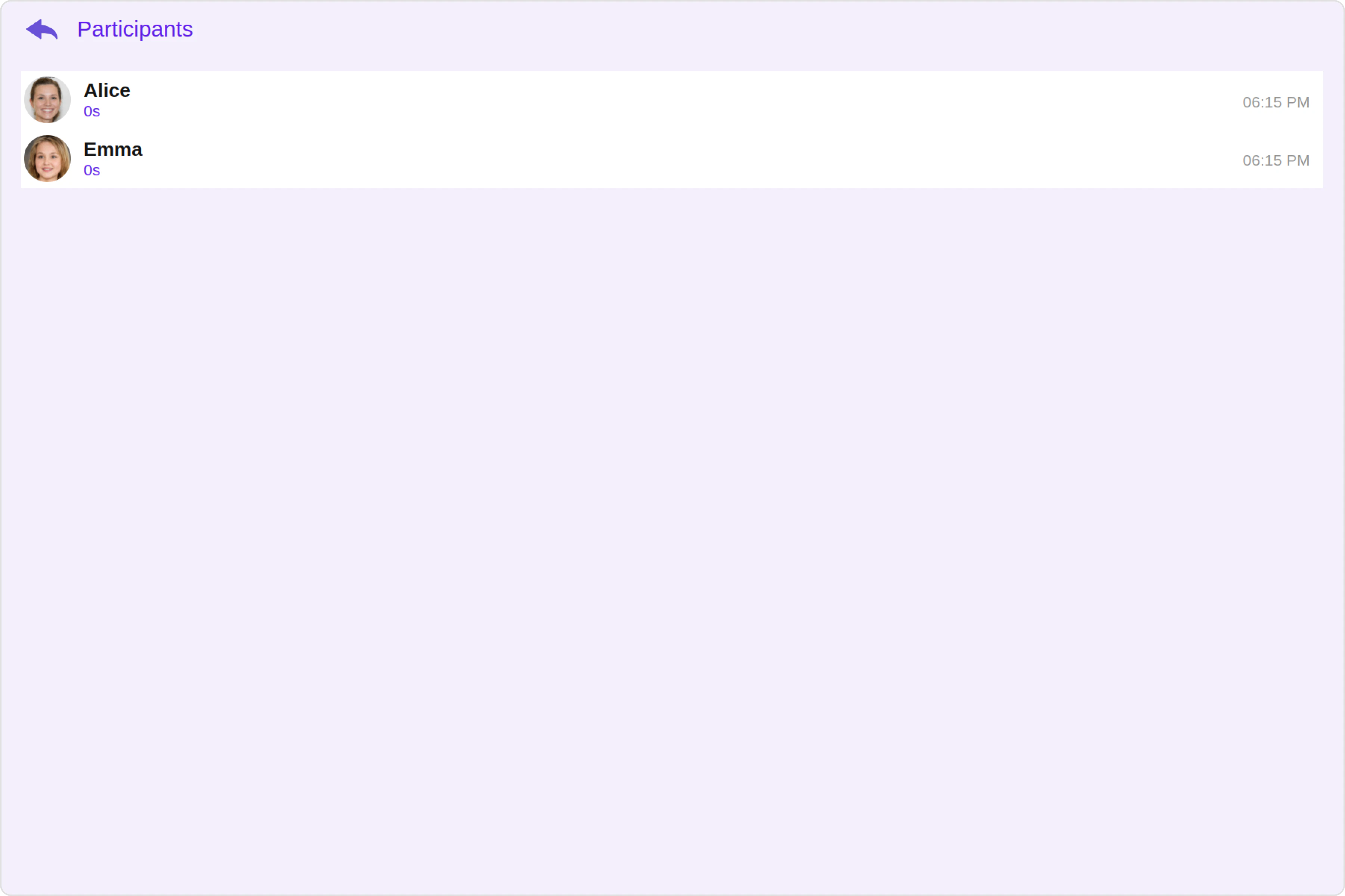 You can customize the properties of the Call Log Participants component by making use of the callLogParticipantsConfiguration. You can accomplish this by employing the callLogParticipantsConfiguration props as demonstrated below: