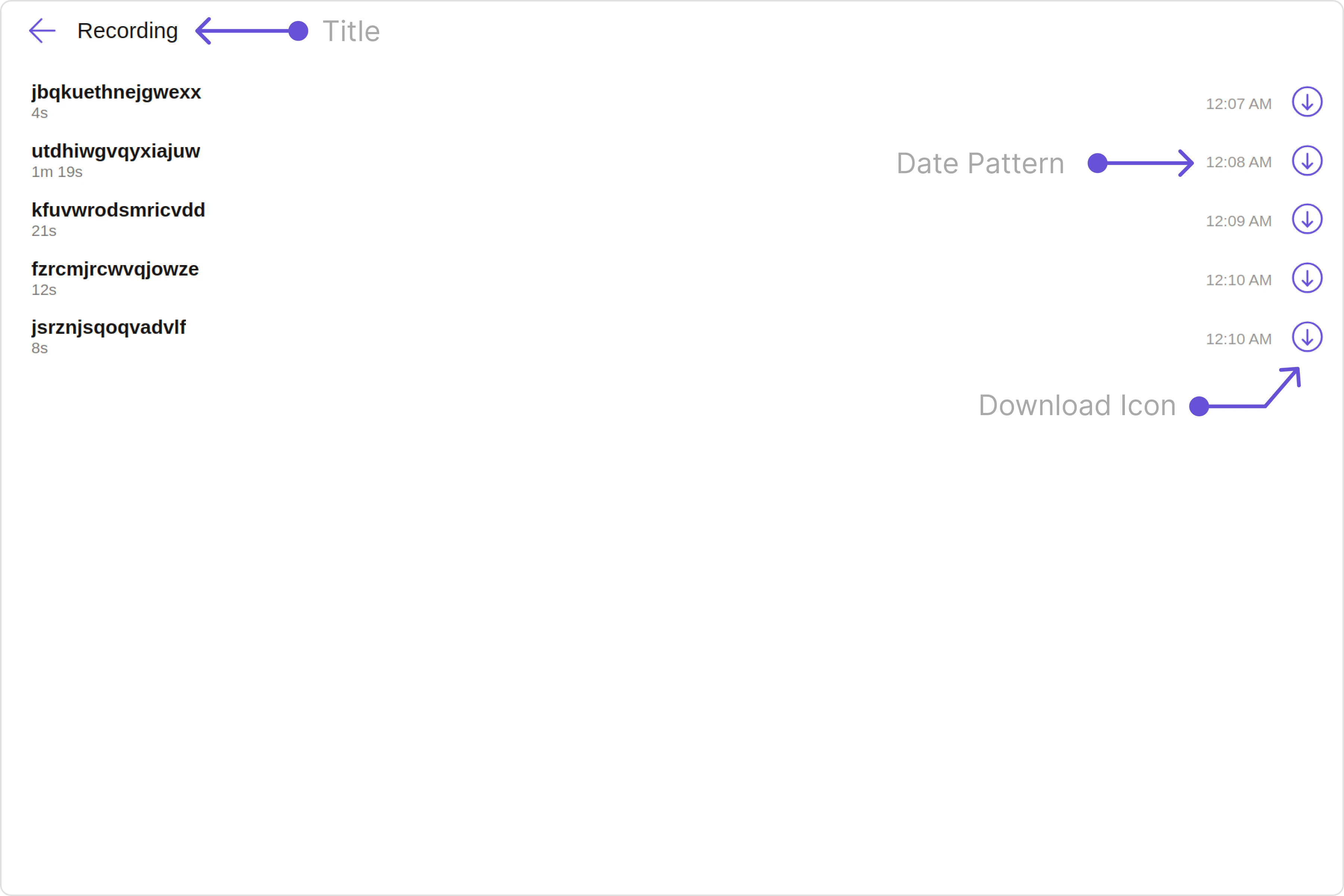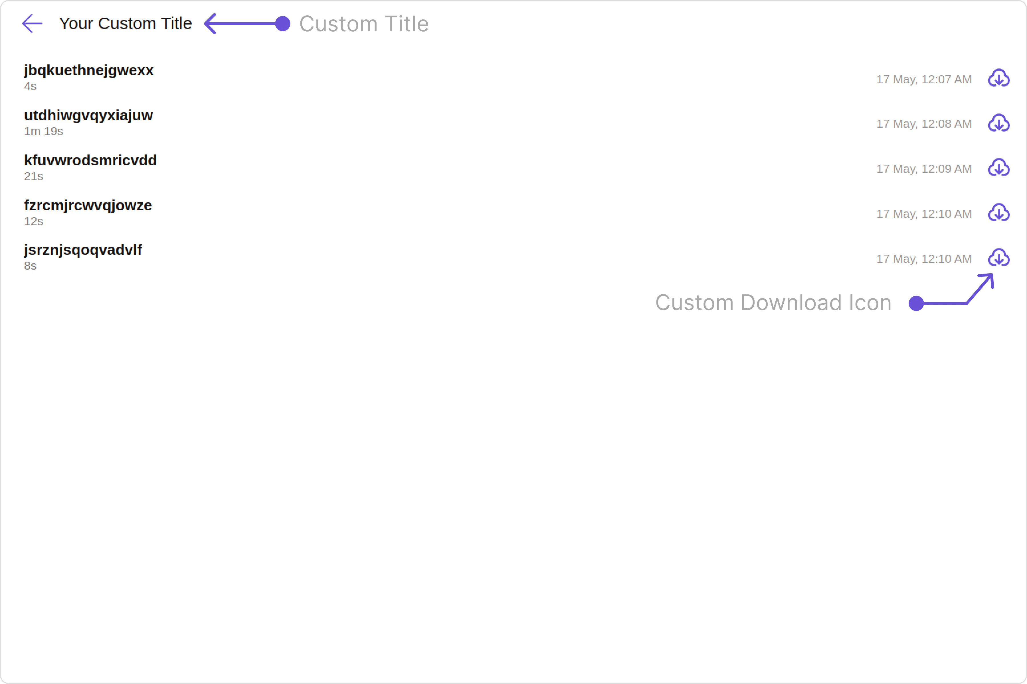To fit your app’s design requirements, you have the ability to customize the appearance of the CallLogRecordings component. We provide exposed methods that allow you to modify the experience and behavior according to your specific needs.