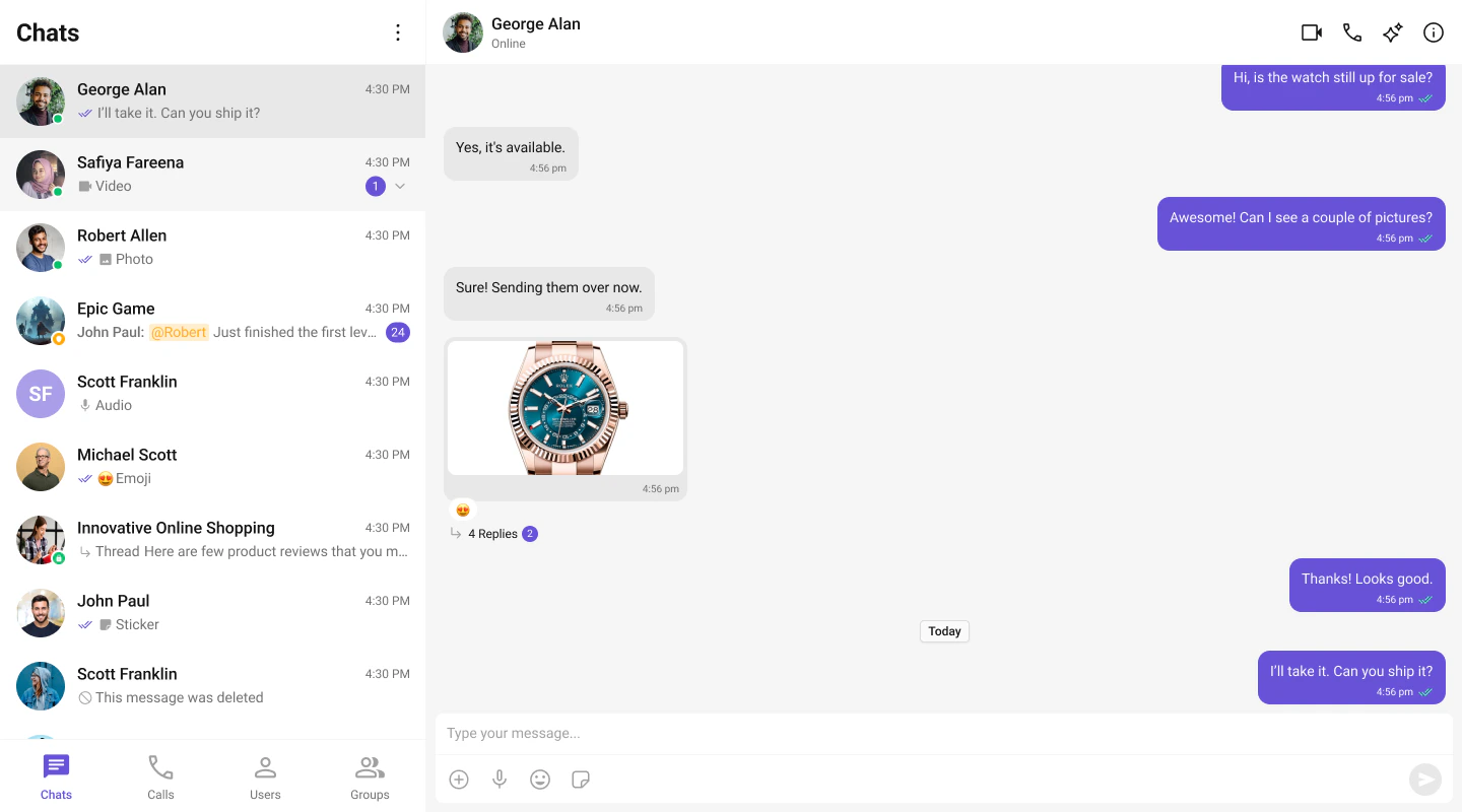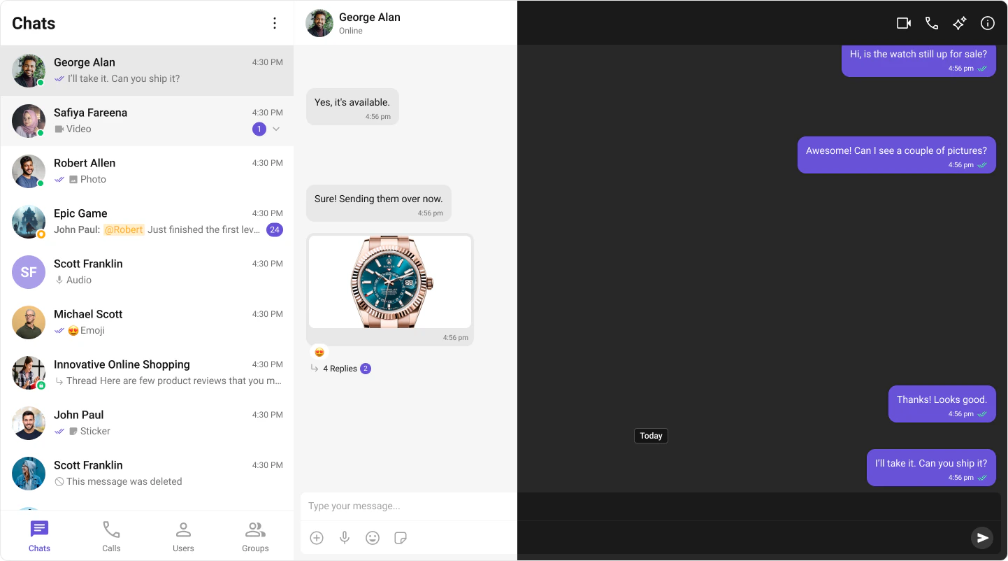 With v5, composite components have been replaced with smaller, modular components, such as Conversations, Message Header, Message List, and Message Composer. This modular approach makes integration more flexible and easier to understand. Each component has a well-defined purpose, allowing developers to use them in ways that suit their specific requirements. The need for complex configurations has been eliminated, as developers can now customize behavior and styling directly via props or CSS. Styling has been significantly simplified, with every component carefully assigned thoughtful CSS class names, enabling developers to customize styles globally or at the component level effortlessly. To support the transition from v4 to v5, CometChat has built a sample app that replicates the functionality of v4’s composite components. This sample app serves as a reference for developers looking to build additional features such as user/group details, call log details, threaded messages, and advanced messaging capabilities. By following this approach, developers can take full advantage of v5’s modular design while implementing complex functionality in an organized manner.