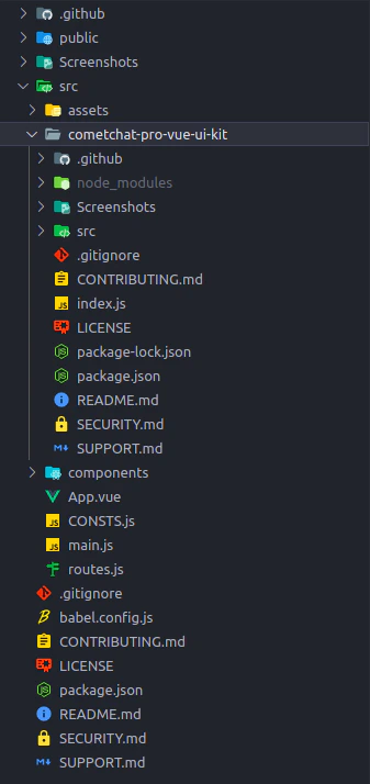 cometchat-pro-vue-ui-kitinto your project’s package.json and install them. - We are using emoji-mart-vue-fast Please install respective library depending on your Vue version